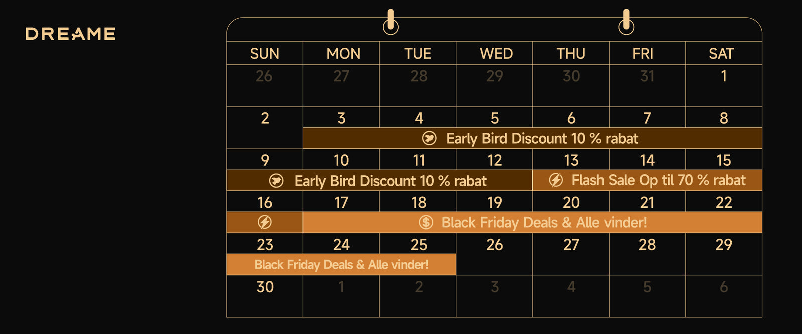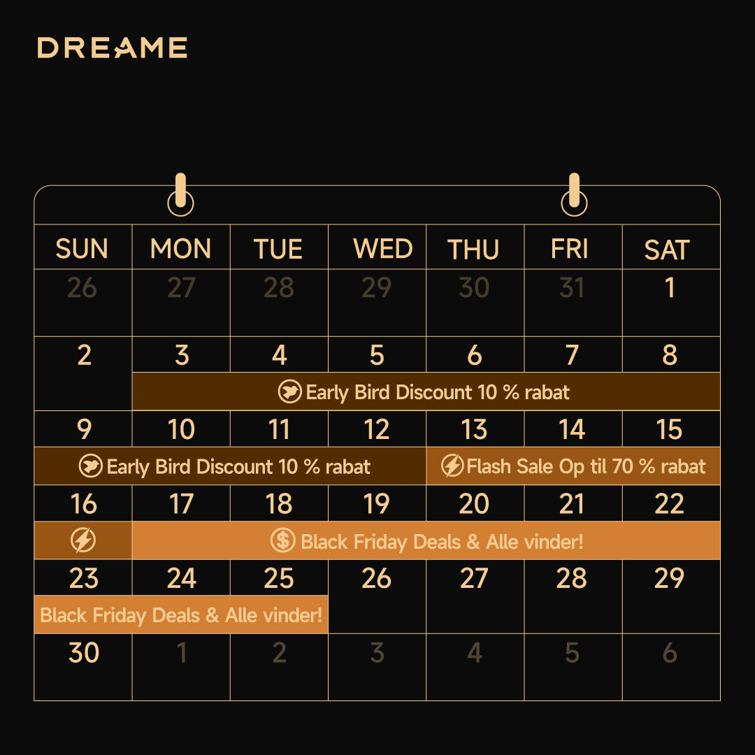 Abonnenter, der tilmelder sig i kampagneperioden, modtager en kupon på 10 % ekstra rabat. Når kuponen er indtastet, fratrækkes rabatten automatisk fra den normale pris. Dreame forbeholder sig retten til til enhver tid at forkorte eller forlænge kampagneperioden uden forudgående meddelelse til deltagerne.