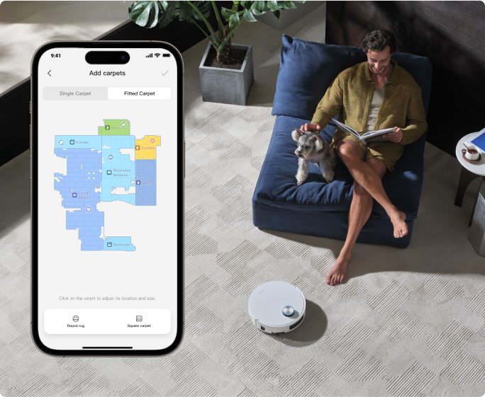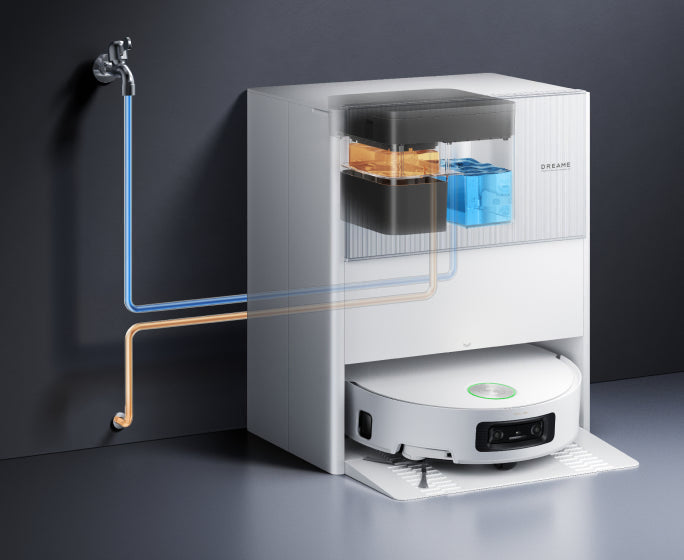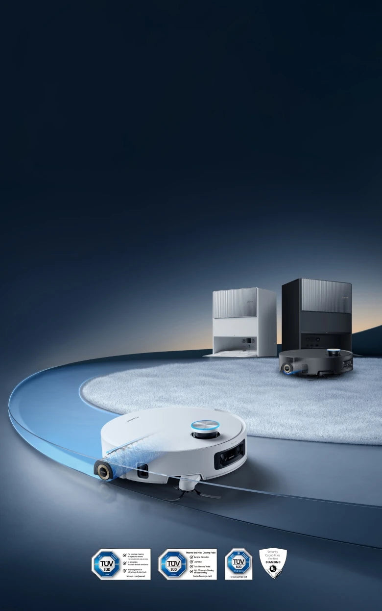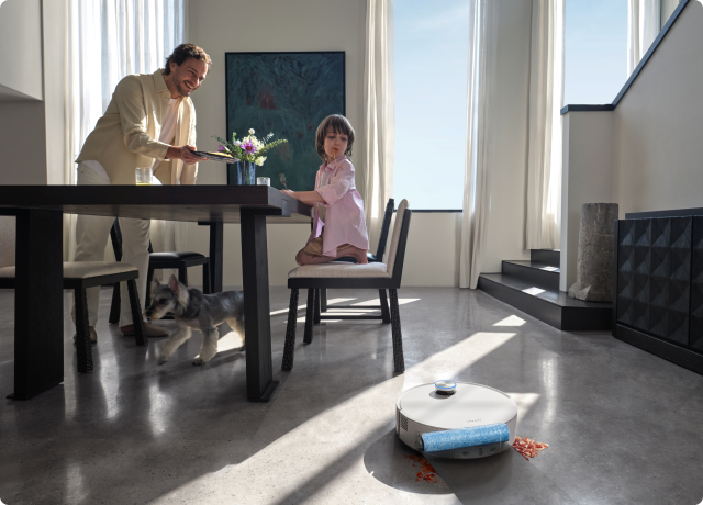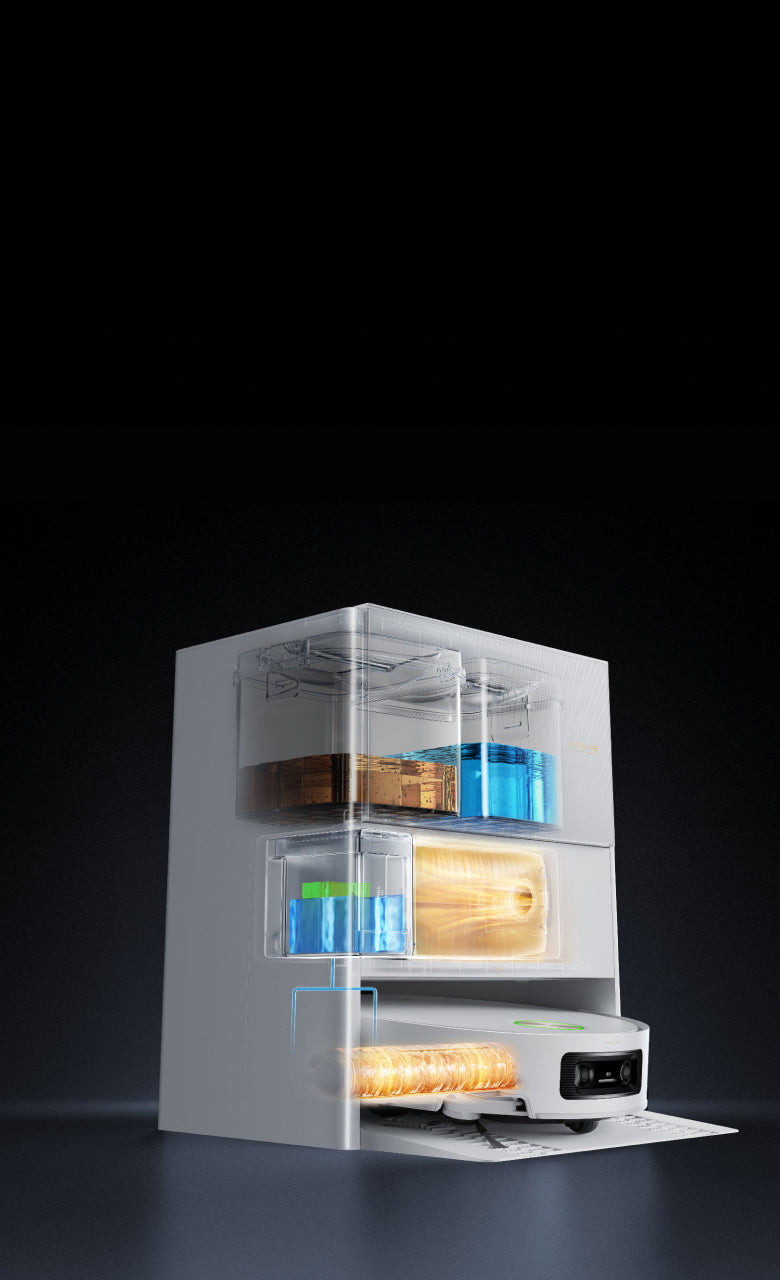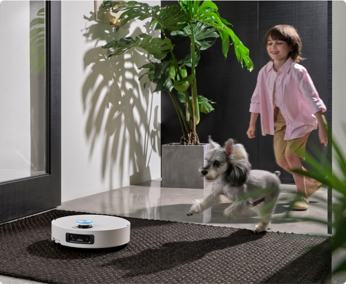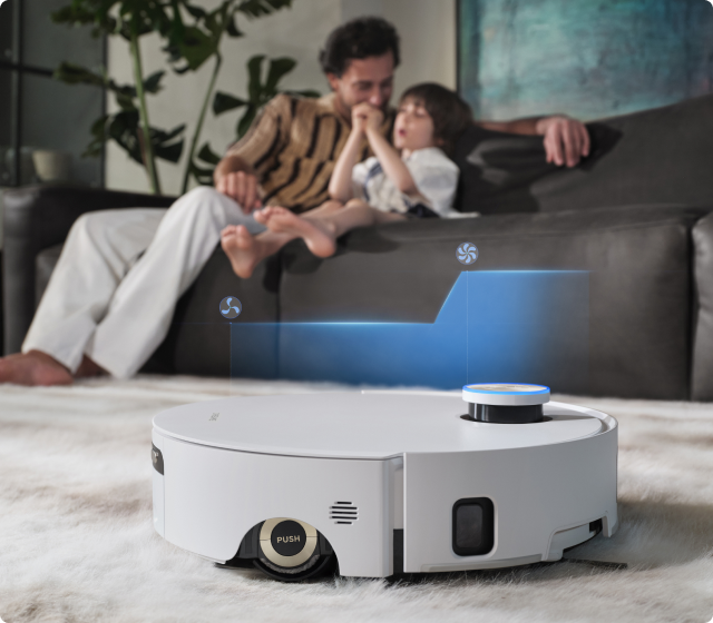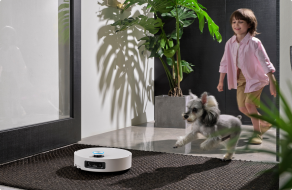 På samme måde som mennesker opfatter omgivelserne, registrerer to HD AI-kameraer dybdeoplysninger og danner 3D-data, så robotstøvsugeren nemt undgår flere end 240* genstande med et præcisionsniveau ned til 1 mm*.AstroVision™ er revolutioneret af NVIDIA Isaac SIM og kontinuerlig forstærkningsindlæring og leverer nu ultrapræcis dynamisk forhindring. Oplev optimeret navigationseffektivitet i miljøer med høj interferens og konstant forandring.