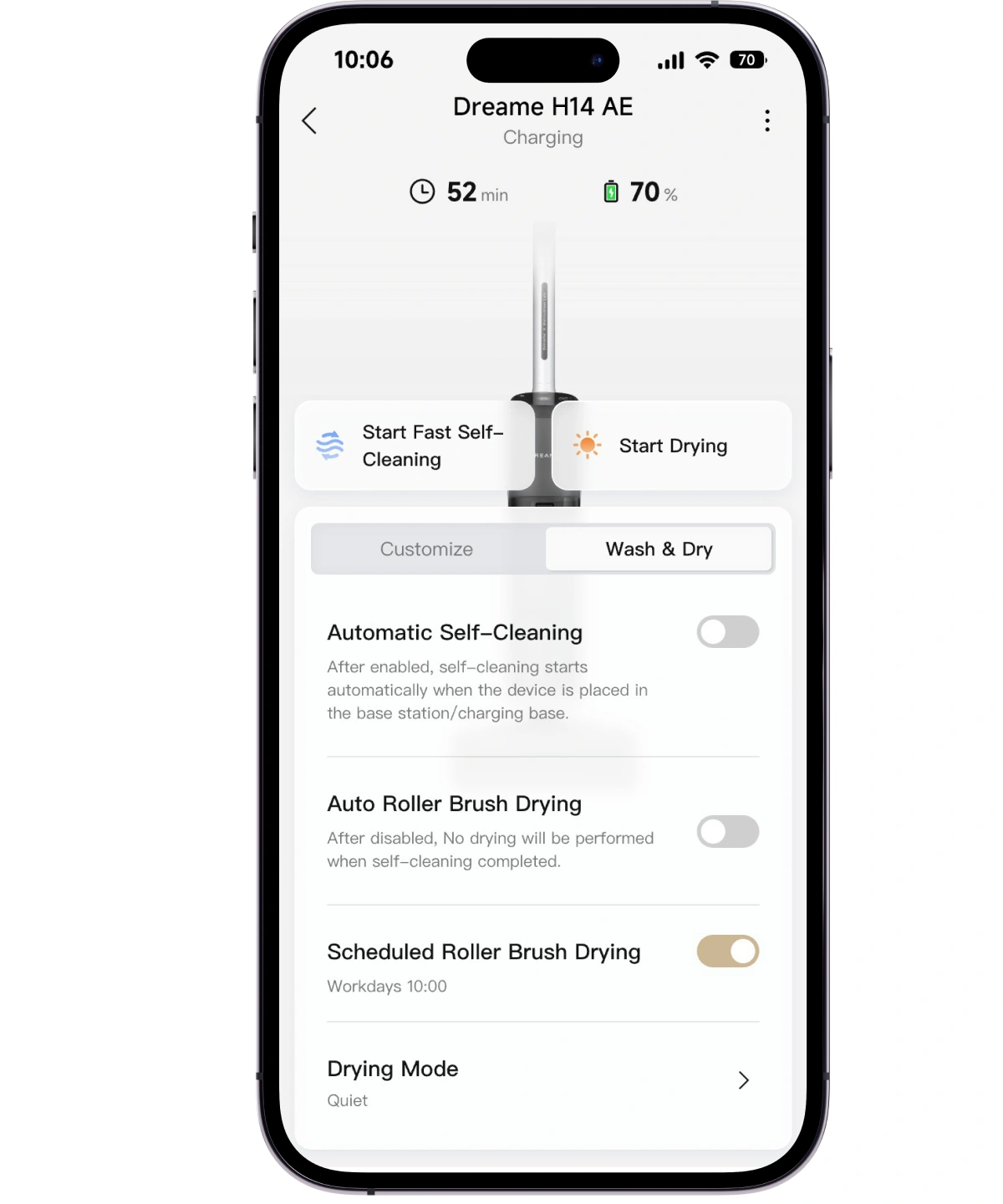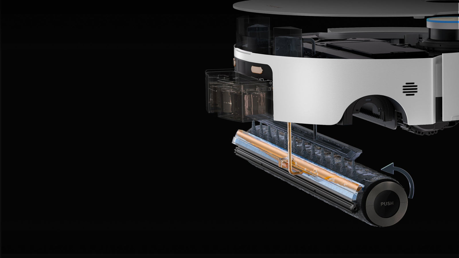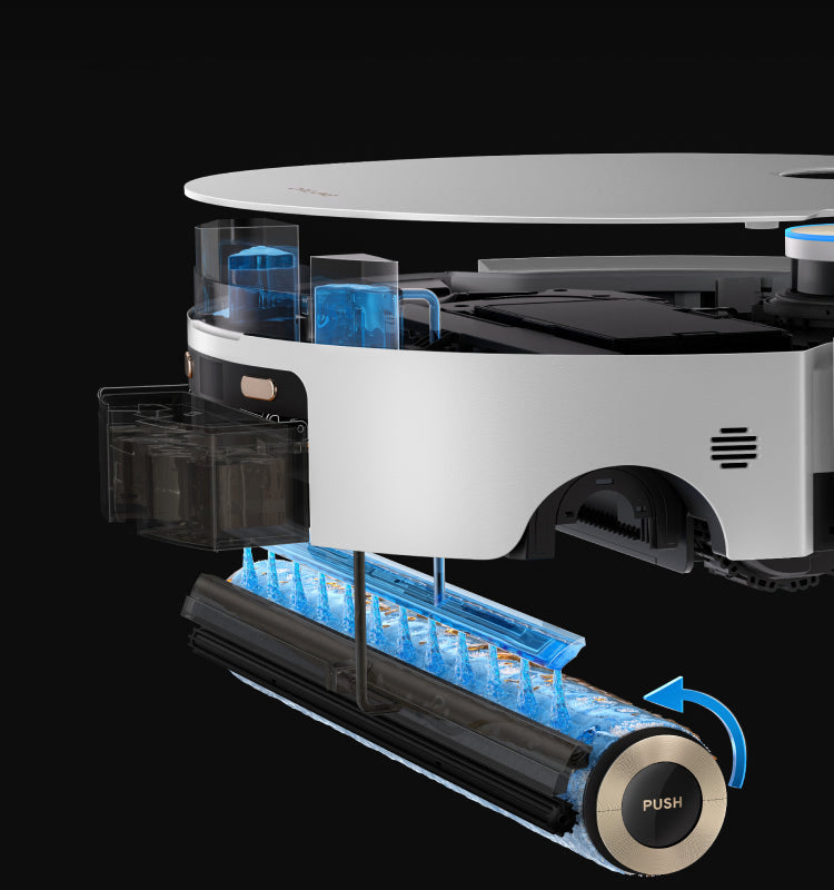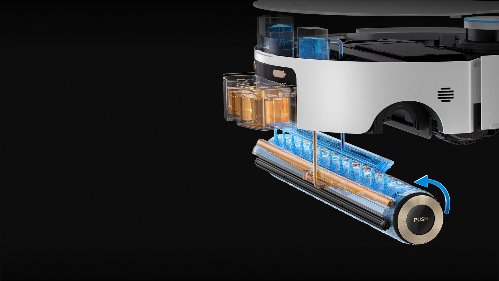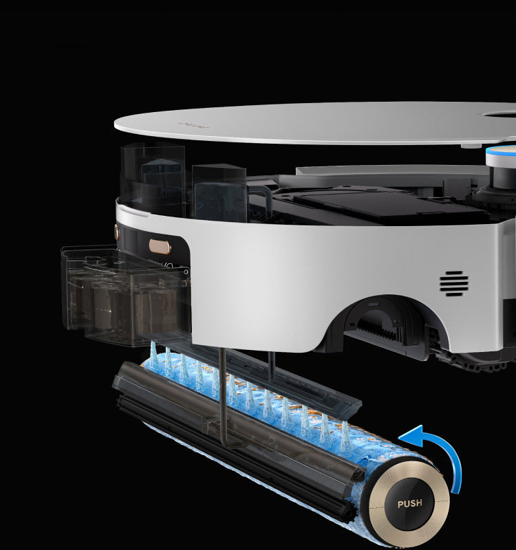 Branchens første stykke FluffRoll™-teknologi er fremstillet med tætte fibre, så rullemoppen kan trænge ned igennem revner mellem gulvplanker og rense indtørrede pletter mere effektivt. Den har et rysterullemodul med en højhastighedsmotor, der drejer rullen i den modsatte retning under rysteprocessen og løsner moppepuden, når den kommer i kontakt med gulvet.