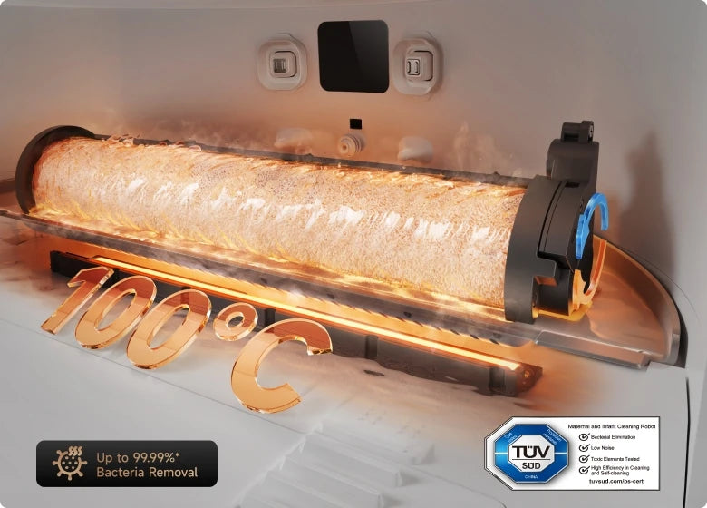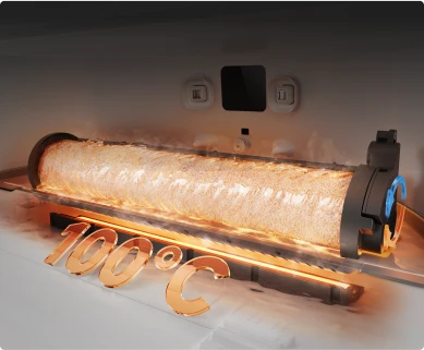*99,99 %: 100 °C varmt vand viser sig at dræbe 99,99 % E. coli og inaktivere 99,99 % influenza A virus H1N1 under laboratorietestforhold, som stammer fra SGS IBR Laboratories (rapport nr. HFT250600026271). Den faktiske ydeevne kan variere.