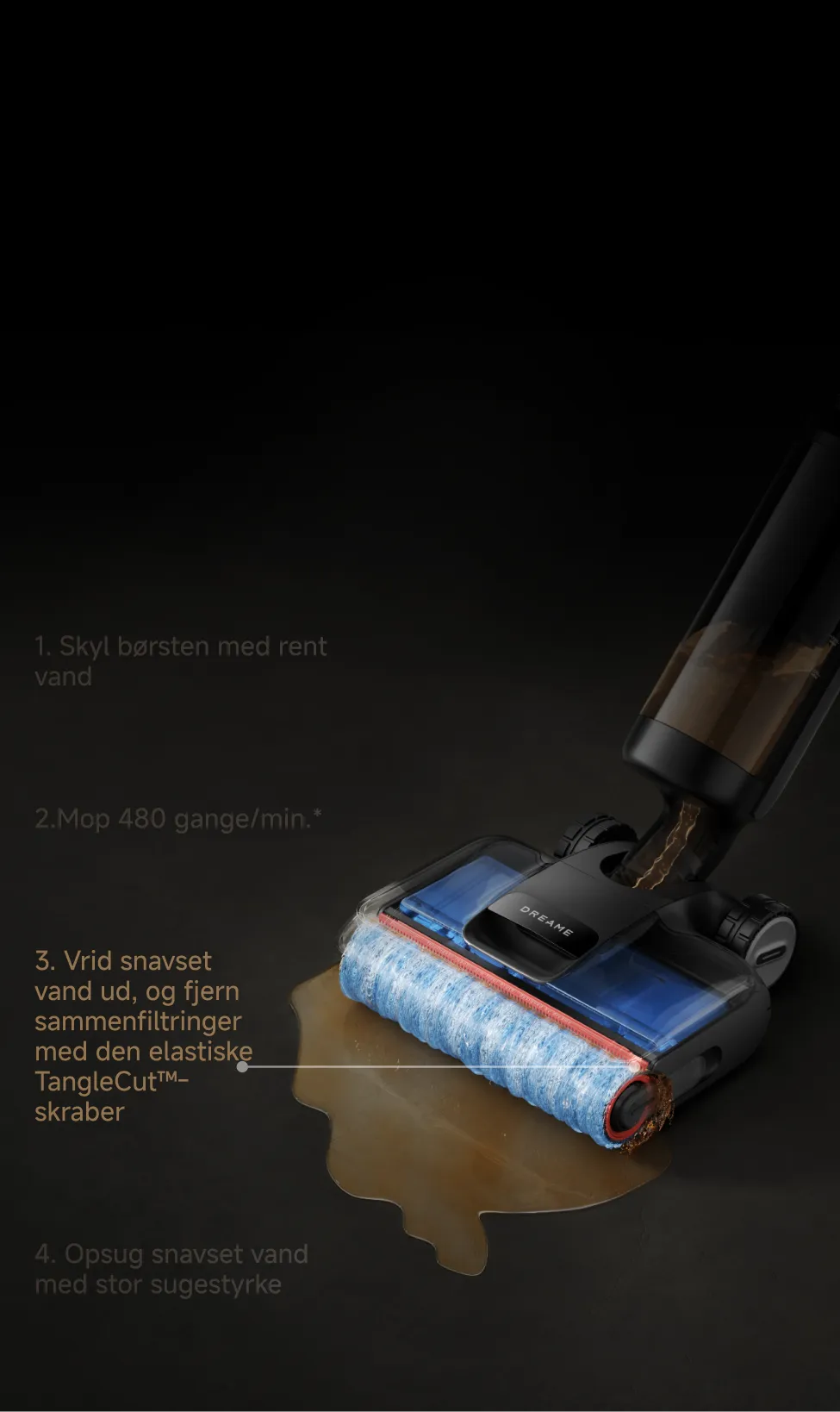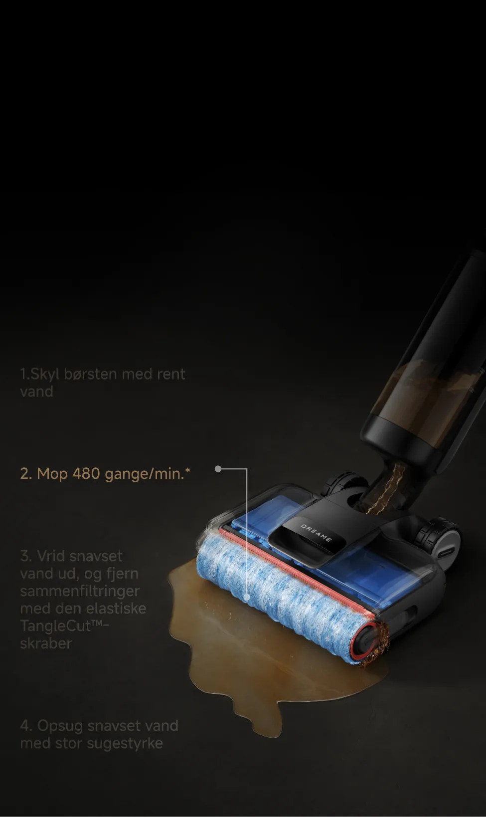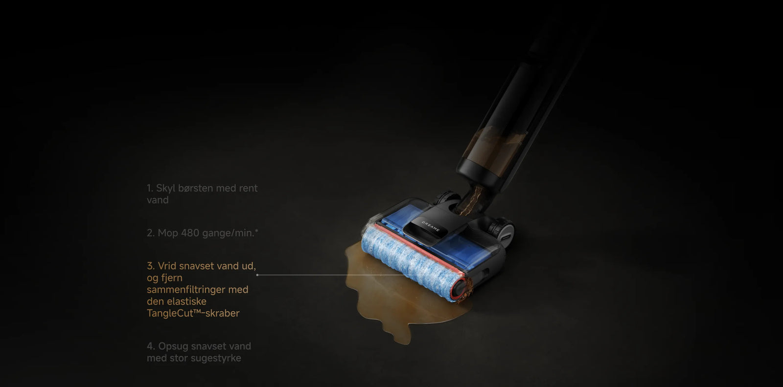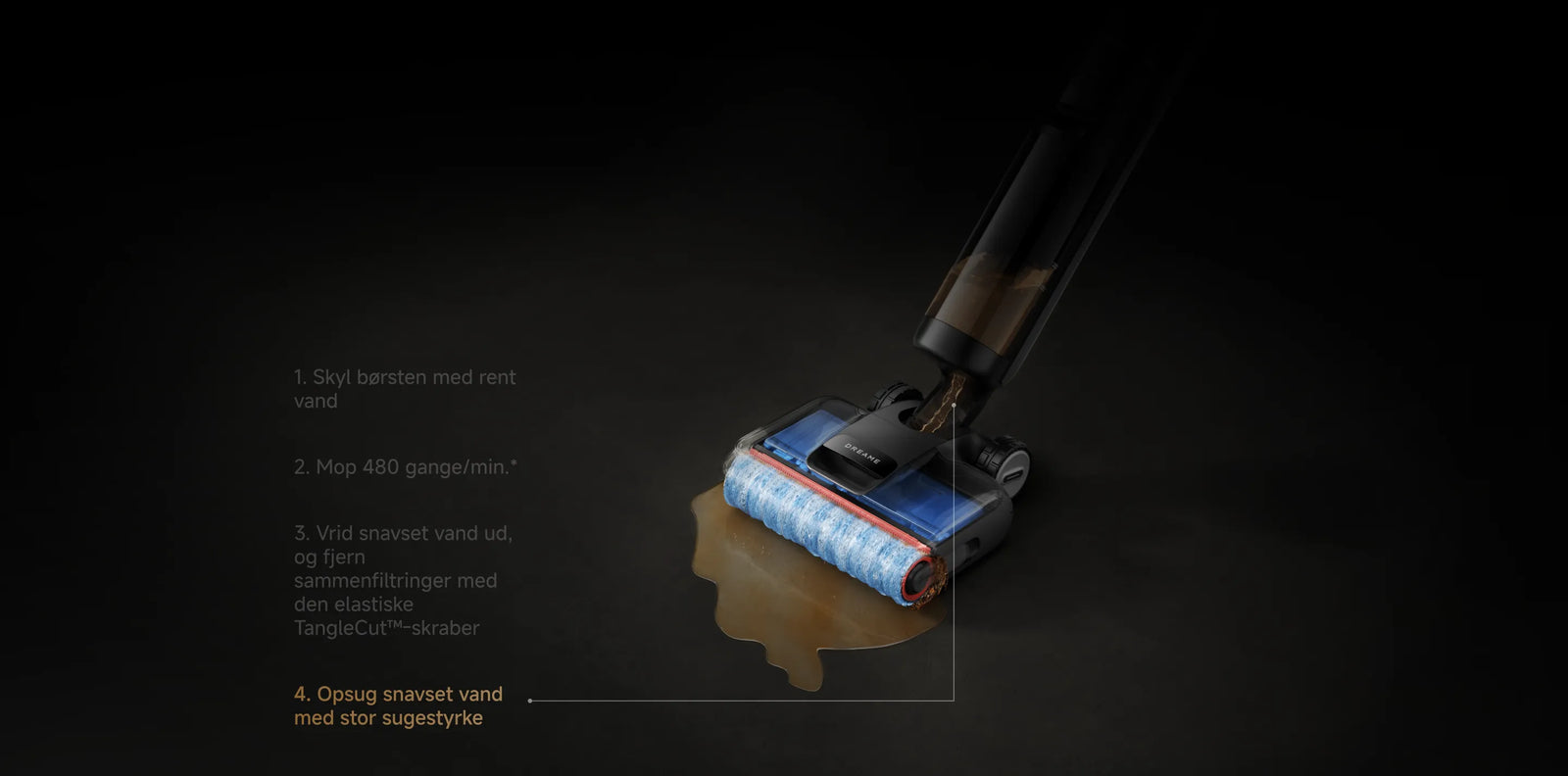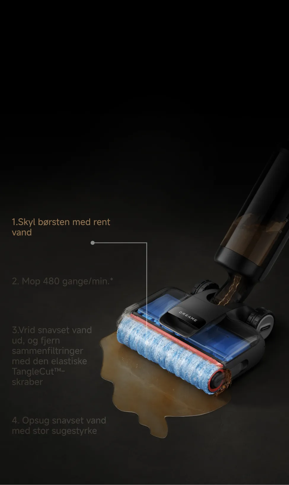 *0,2 g vandstriber: H12 Pro FlexReach efterlader mindre end 0,2 g vandmærker efter 4 runder gulvvask af et 60 cm trægulv med en hastighed på 20 cm/sek., baseret på vores interne laboratoriedata. De faktiske resultater kan variere afhængigt af gulvtype, brug og miljømæssige forhold.