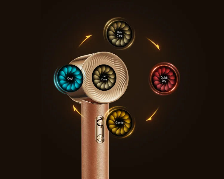 Med en motordrift på 130.000 omdr./min.* giver Hair Miracle en lufthastighed på 70 m/s** og en luftmængde på 70m³/t* for at opnå effektiv tørring. Den kraftige luftstrøm når hårrødderne, fordamper hurtigt fugt og opnår tørt skulderlangt hår på 3 minutter*.