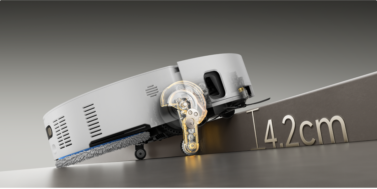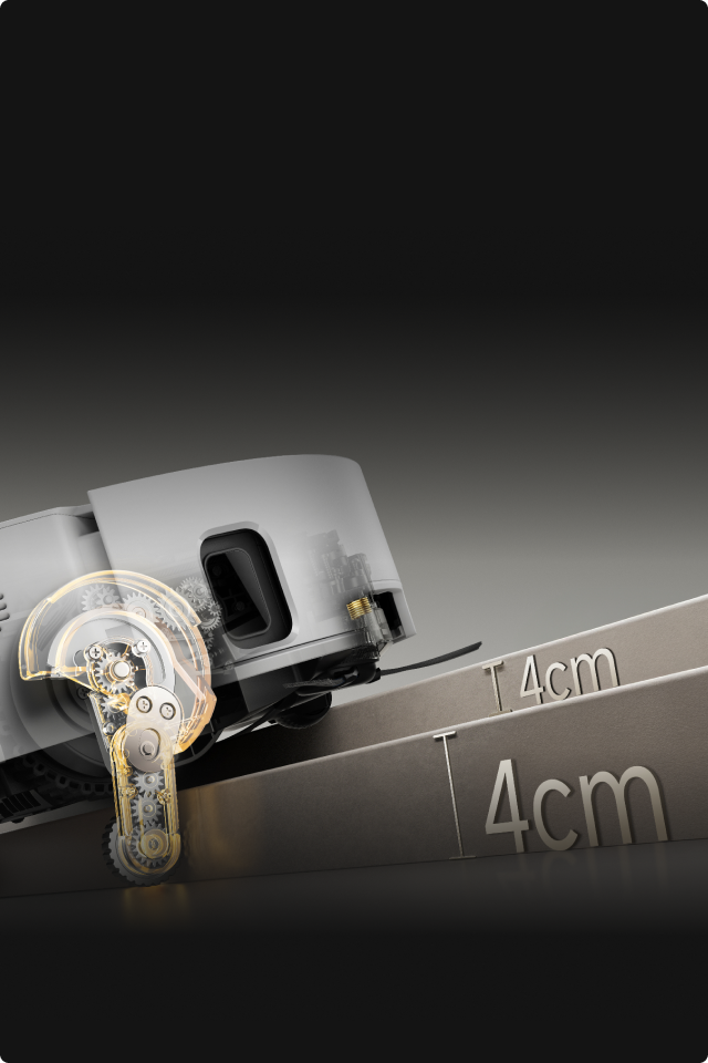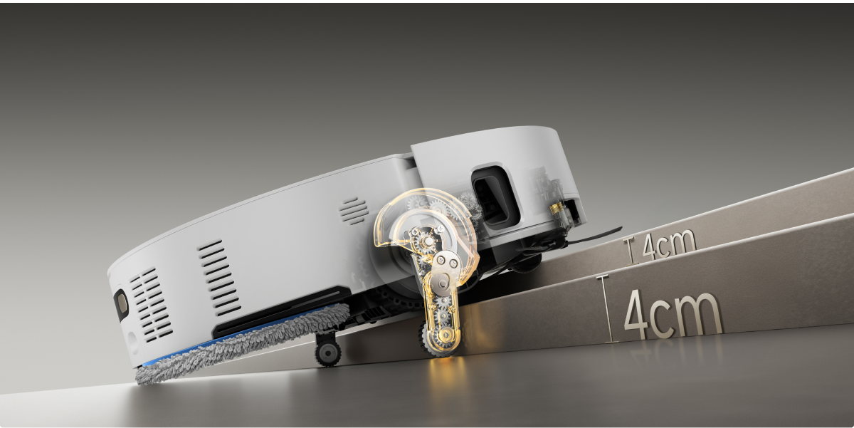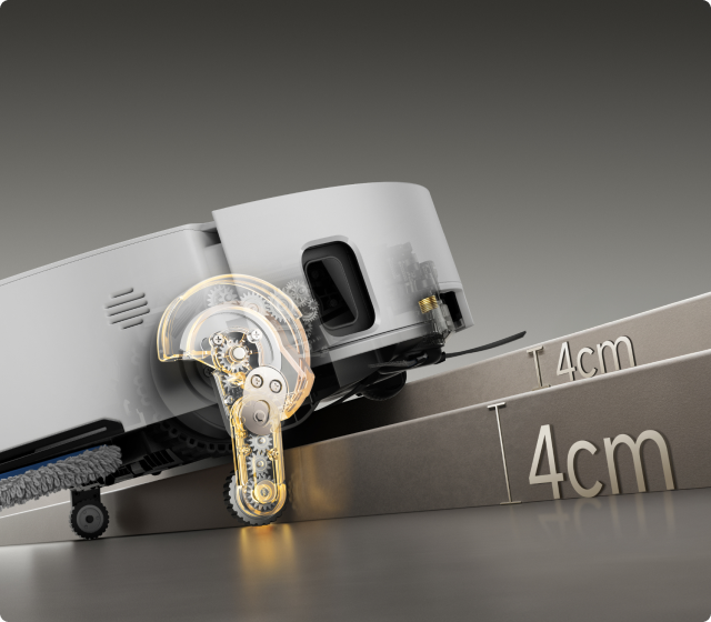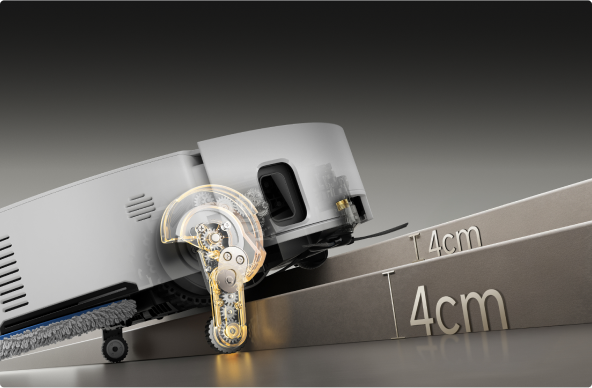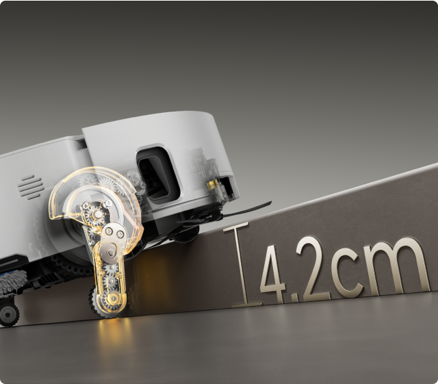 *8 cm, 4 cm: Henviser til det dobbeltlagtrinnets højde, hvor den øverste overflade på det nederste trin er over 12 cm bredt, når robotstøvsugeren bruger dens indtrækkelige ben i Hurdle-stil-tilstand. For et enkeltlagstrin er den maksimale højde 4,2 cm. Baseret på data fra vores interne laboratorium. Den faktiske ydeevne kan variere.