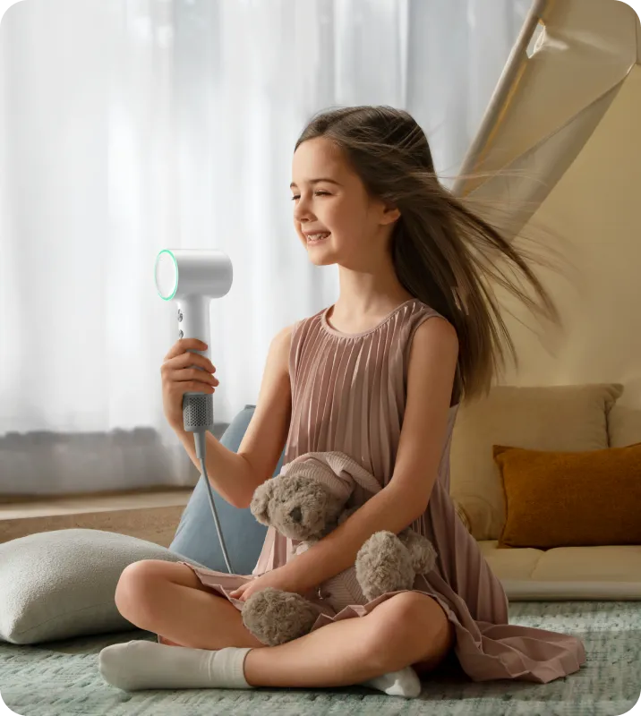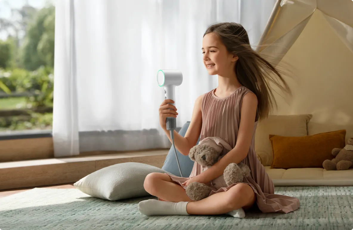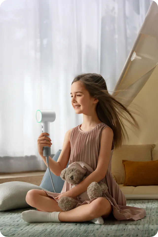 Børnetilstanden giver en skånsom hårtørringsoplevelse med en fast temperaturindstilling på 40 ℃*, der er designet til følsomme hovedbunde og sart hår. Den konstante varme og indbyggede sikkerhed giver en blød, sikker og forældregodkendt rutine til børn.