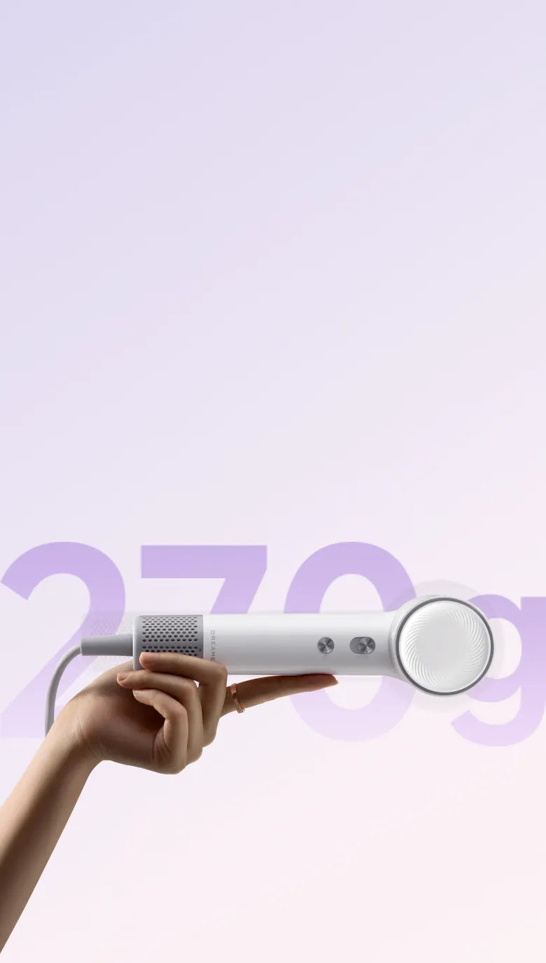 Dreame Mini-hårtørrer med høj hastighed leverer en stærk ydeevne i et kompakt design, og vejer ikke mere end en kaffekop. Den lille størrelse gør den nem at bære, hvilket gør den ideel til rejser, opfriskning af håret efter træning eller til hurtig styling.