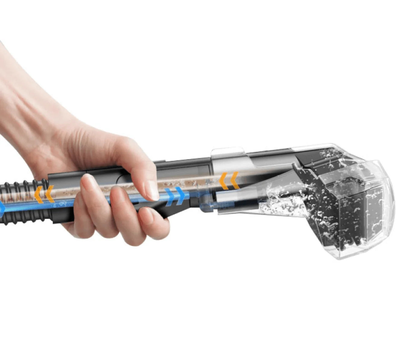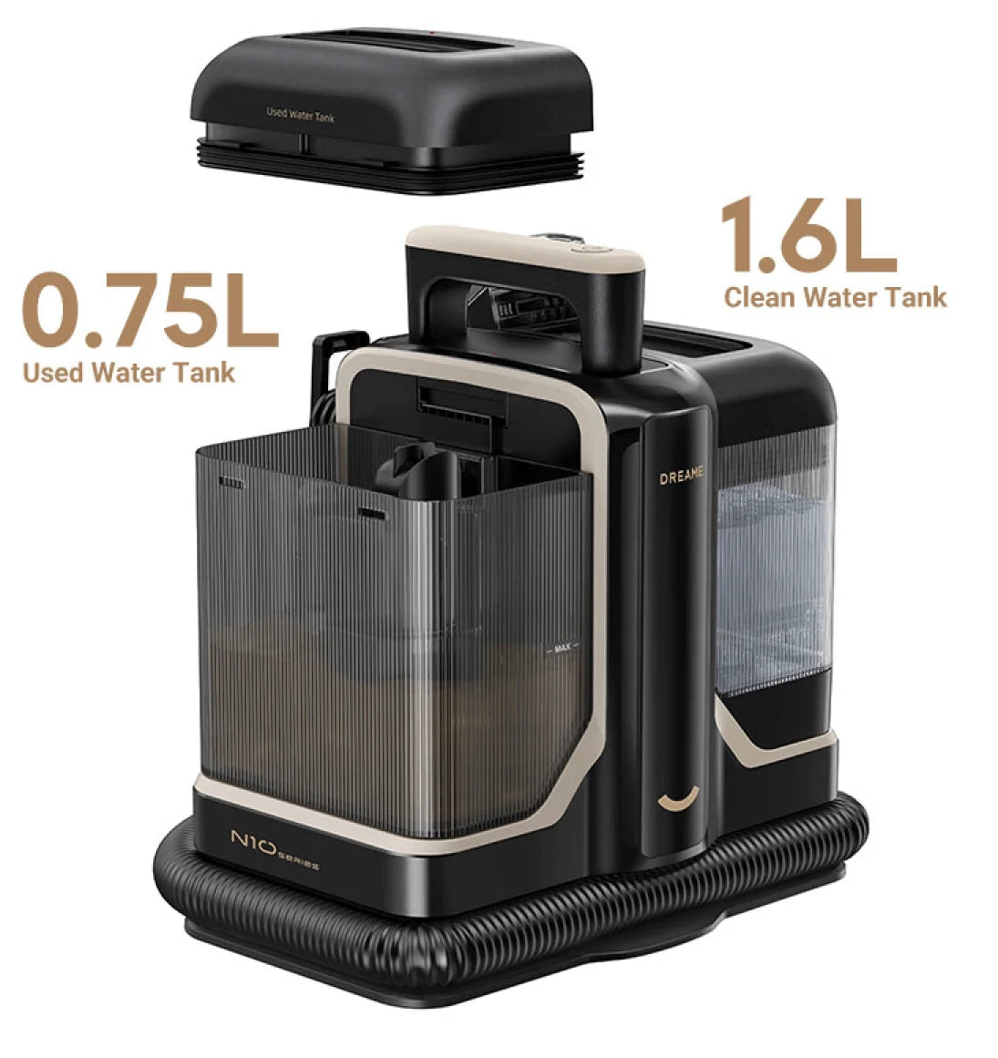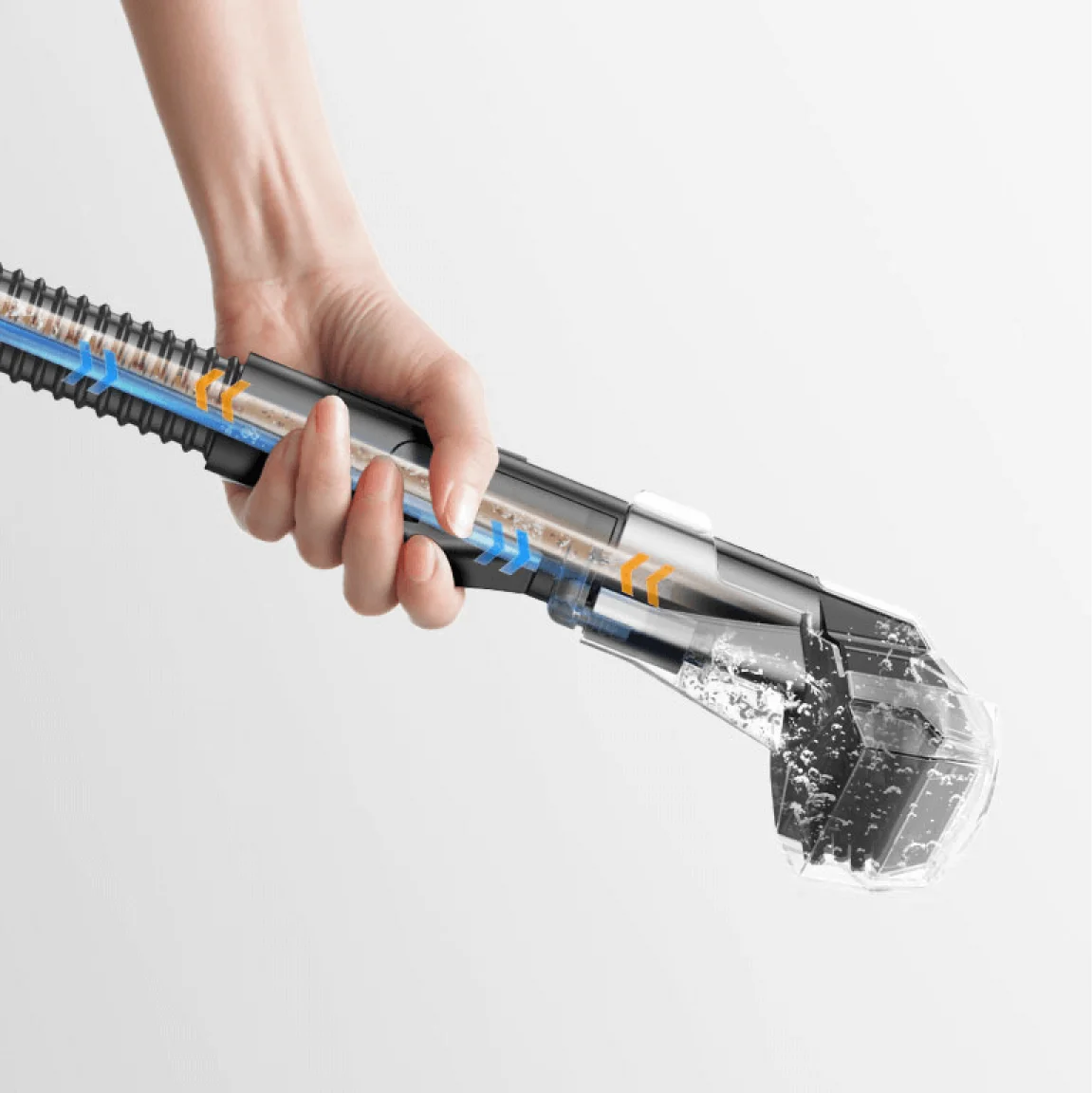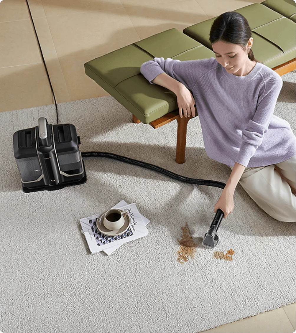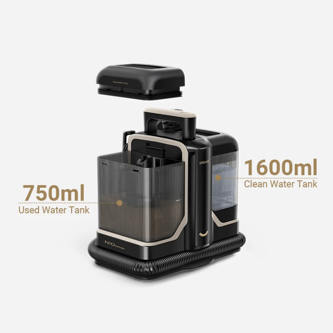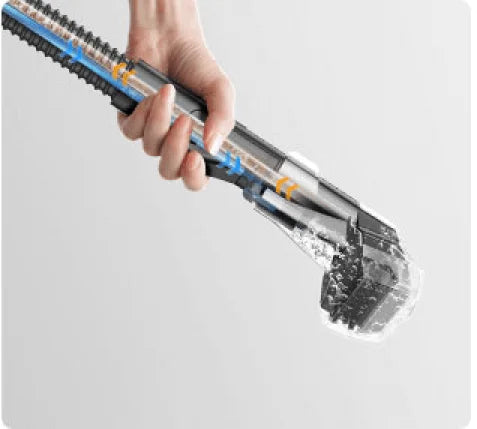 Det er ikke nødvendigt at skrubbe slangerne efter rengøringen. N10's smarte selvrensende værktøj udnytter den smarte rensers kraftige sugeevne til grundigt at skylle indersiden af slangen, hvilket minimerer opbygning af snavs og lugt.