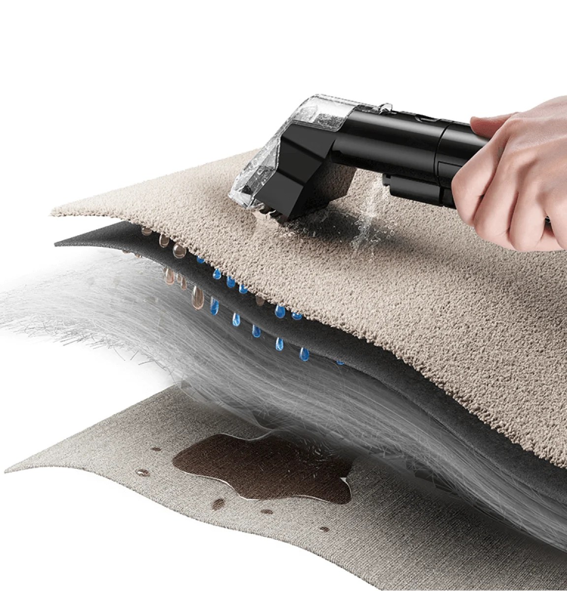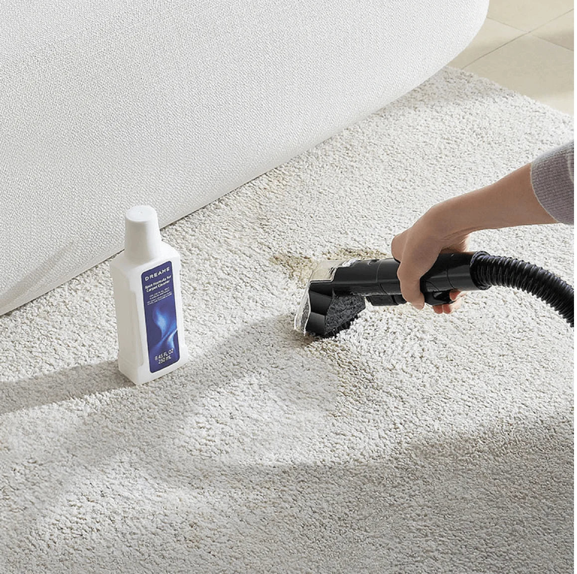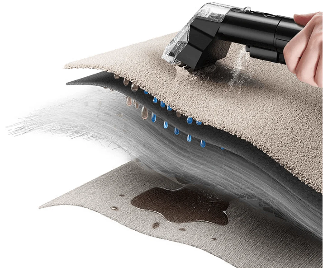 12.000 Pa sugeevne efterlader tæpper næsten tørre på få minutter
