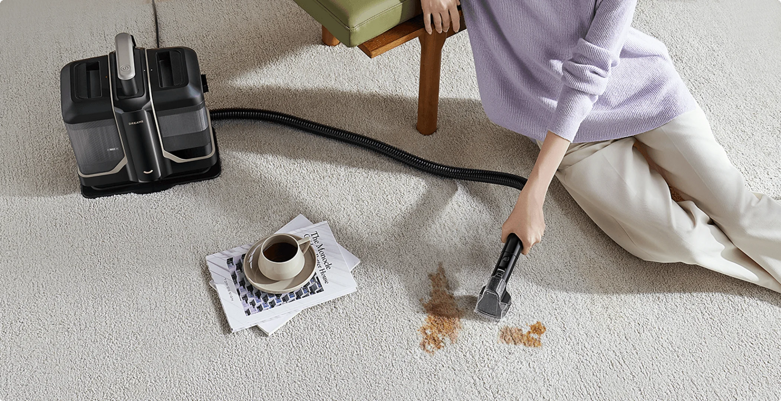 Rengør tæpper ubesværet med en dyb, jævn spray. For hårdere pletter eller lugte, tilføj rengøringsmiddel for et kraftigt boost*.