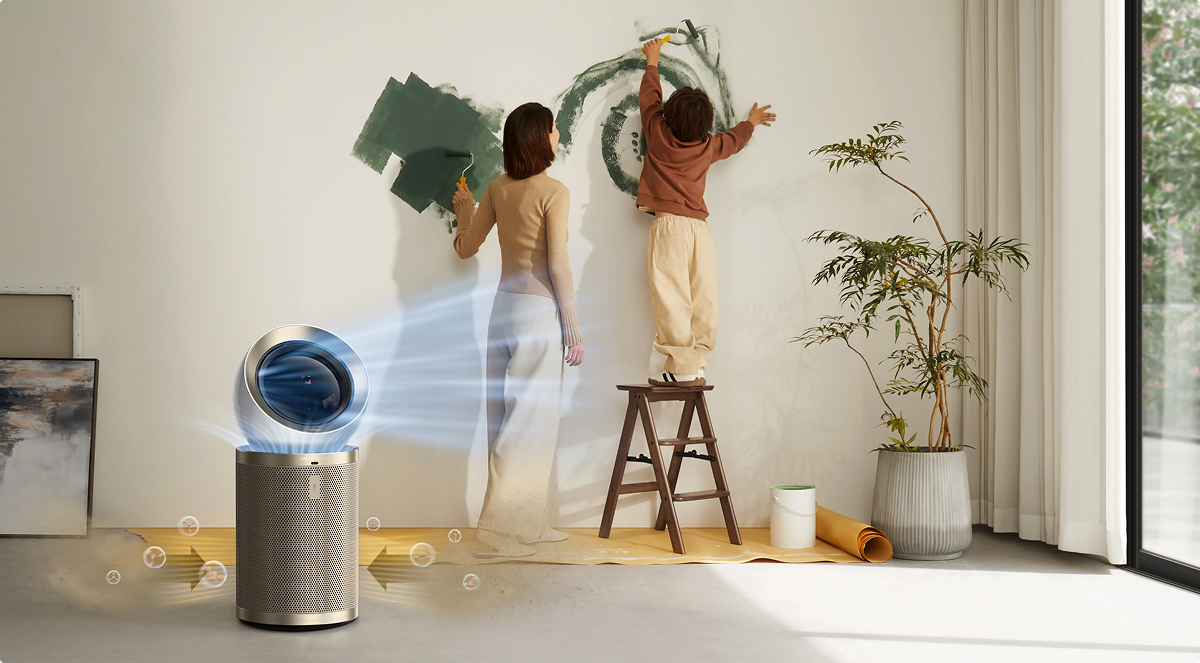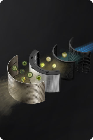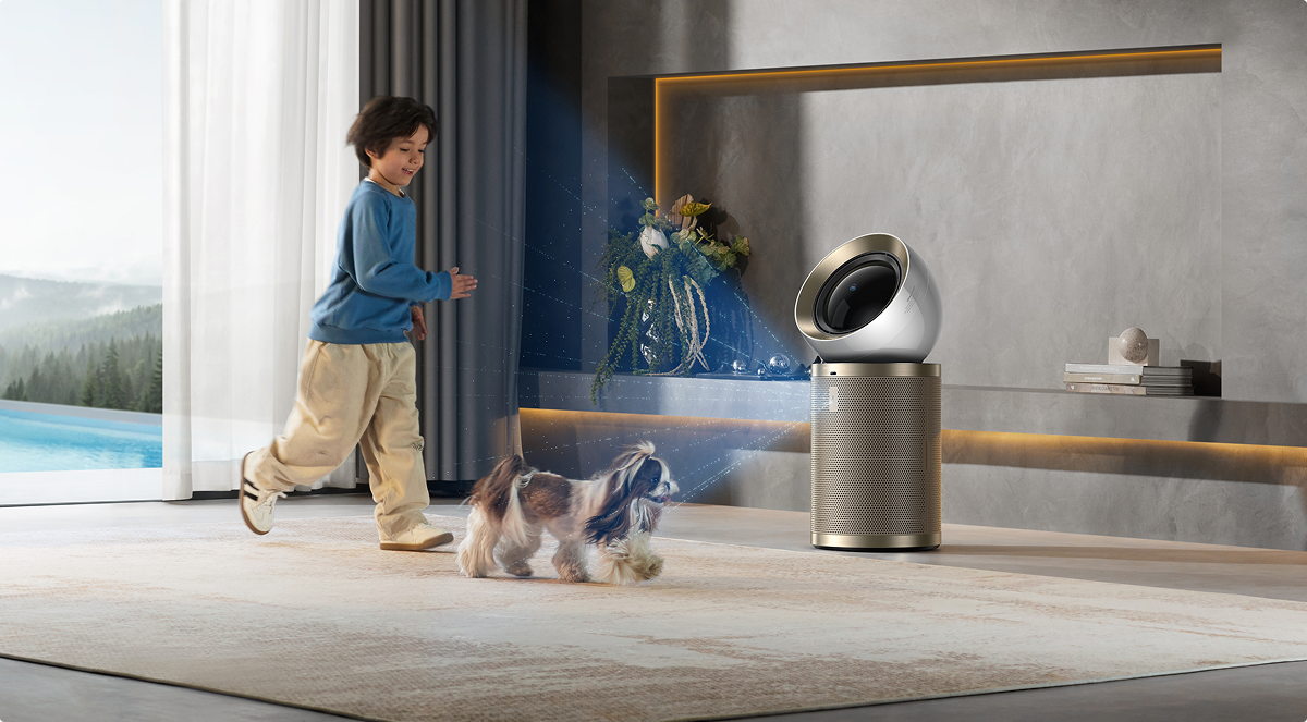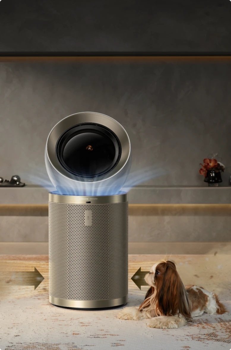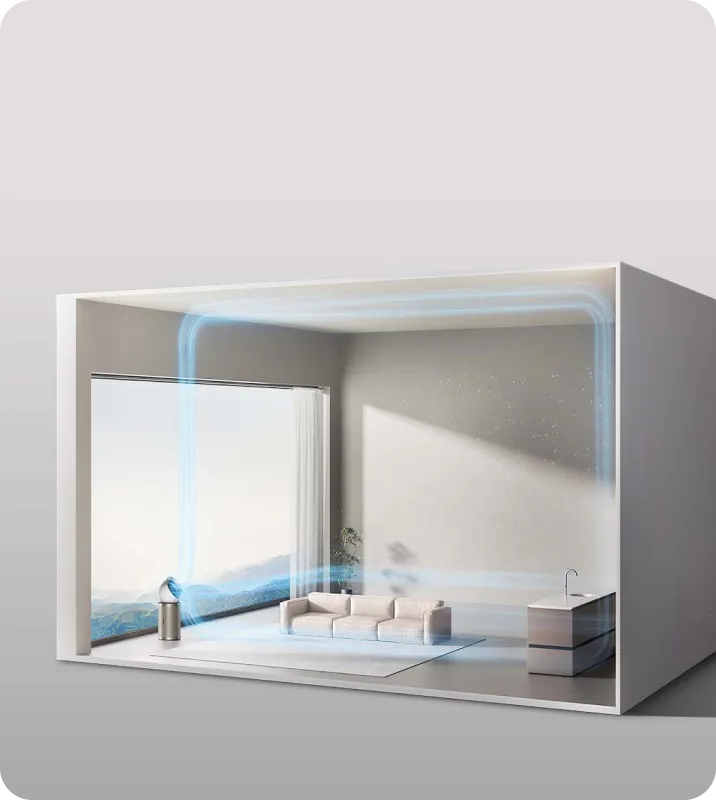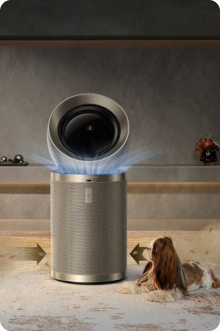 Dreames luftrenser med opadgående og fremadgående luftstrømme tredobler mulighederne og kan bruges både som luftrenser, ventilator og cirkulerende ventilator. Dens design med dobbelt luftstrøm øger luftcirkulationen og skaber et behageligt miljø - ideelt til varmt vejr eller i rum med ringe udluftning.