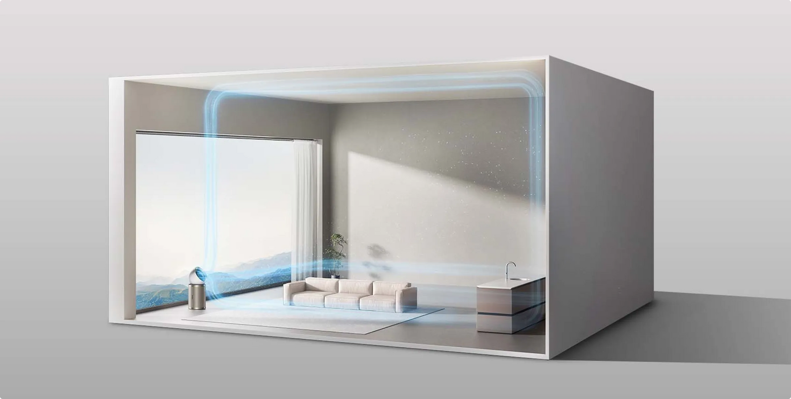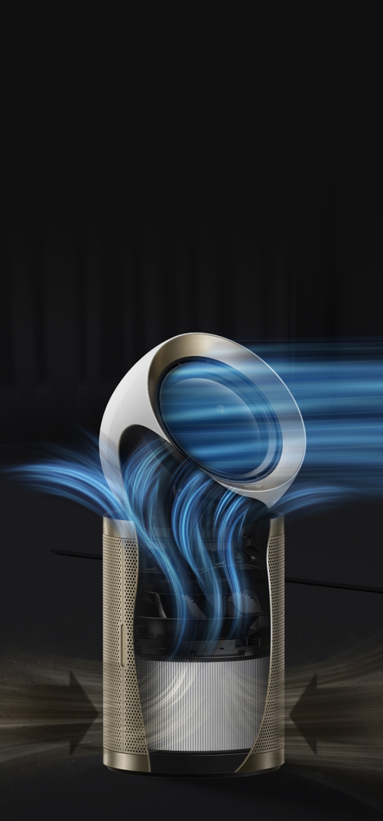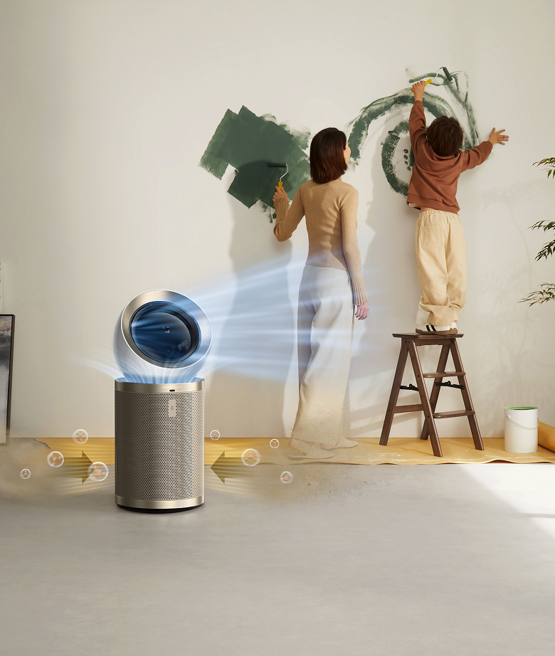 Dreames luftrenser med opadgående og fremadgående luftstrømme tredobler mulighederne og kan bruges både som luftrenser, ventilator og cirkulerende ventilator. Dens design med dobbelt luftstrøm øger luftcirkulationen og skaber et behageligt miljø - ideelt til varmt vejr eller i rum med ringe udluftning.