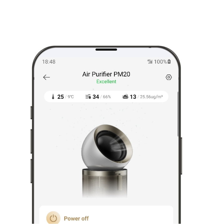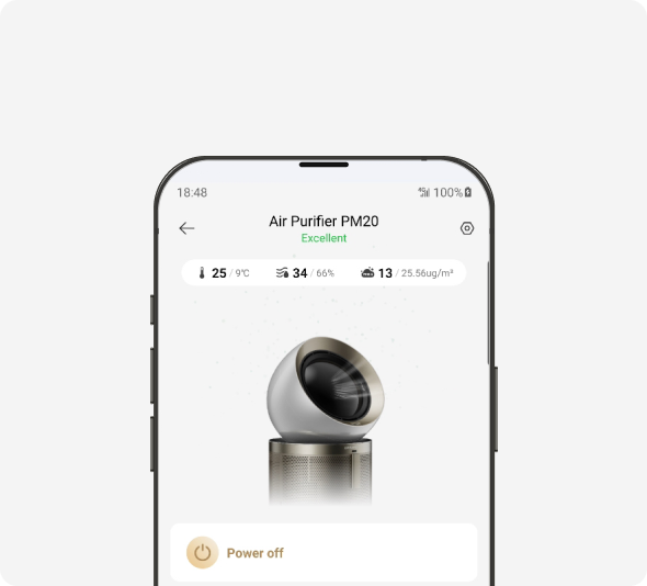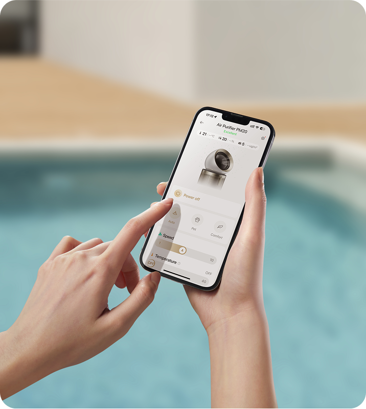 Du kan problemfrit styre Dreames luftrenser med den intuitive Dreame-app. Indstil timere, tjek forureningsniveauer, og styr luftrenseren med stemmekommandoer uden internetforbindelse eller via appen, når du er væk. Det er en ægte håndfri oplevelse.