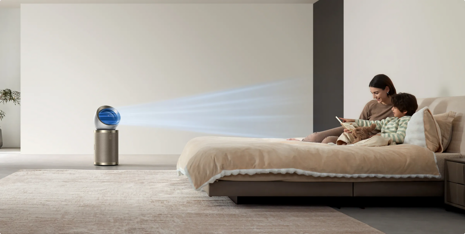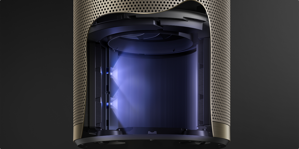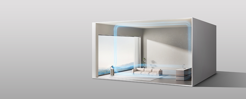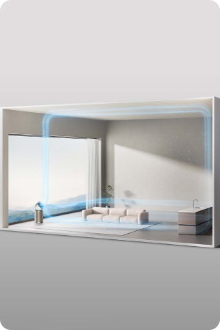 Designet med en ultralang fremadgående luftstrøm fordeler den rene luft i hele rummet. Luftrenseren giver forbedret luftcirkulation med jet-teknologien og når op til 10 meter* ud, så den kan dække et opholdsareal på 100㎡*.
