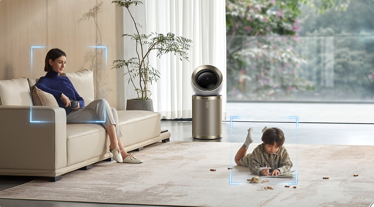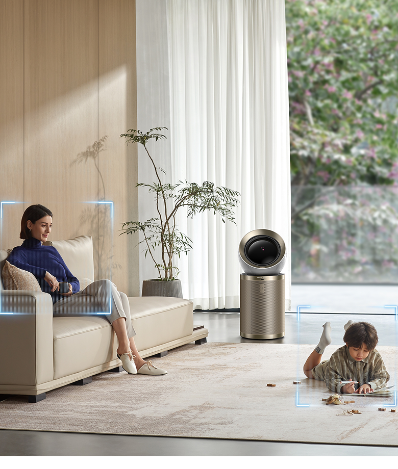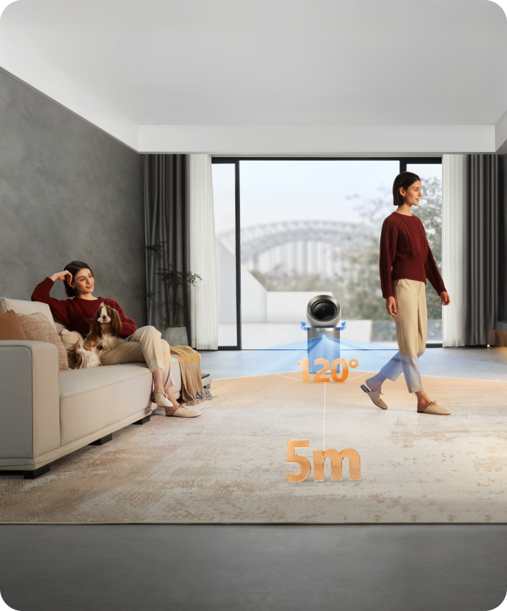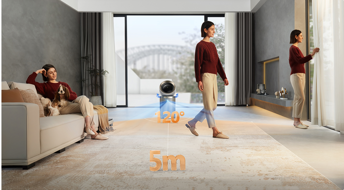 Den justerbare luftstrøm tilpasser sig alle i dit hjem. Hvis der er én person i rummet, følger luftstrømmen personens position. Hvis der er flere personer i rummet, bevæger luftstrømmen sig intuitivt fra side til side*, så dækningen bliver fordelt bedre og jævnt.