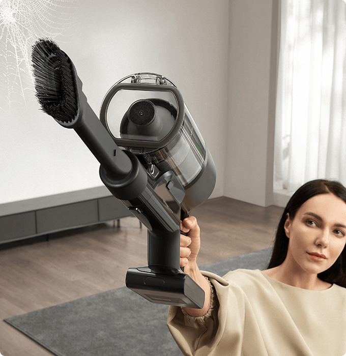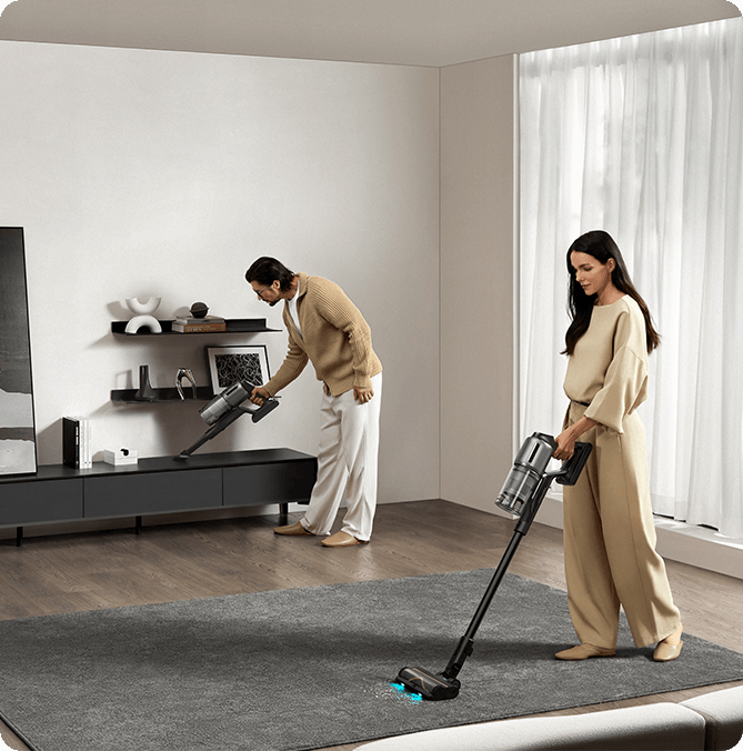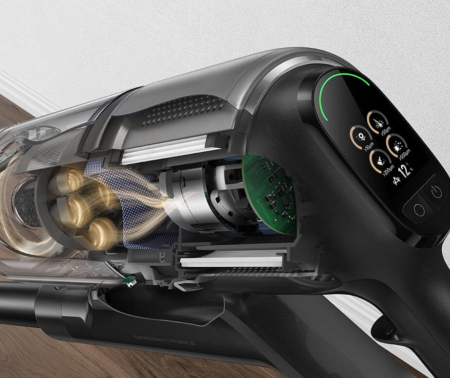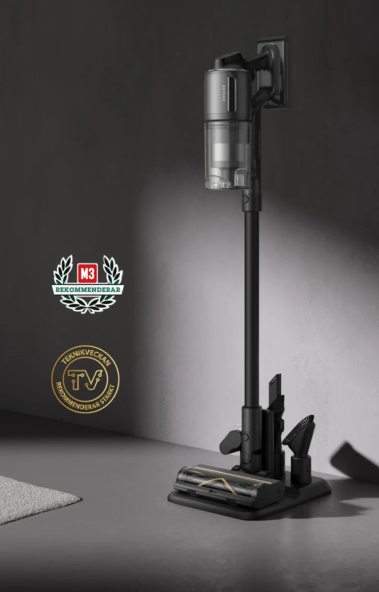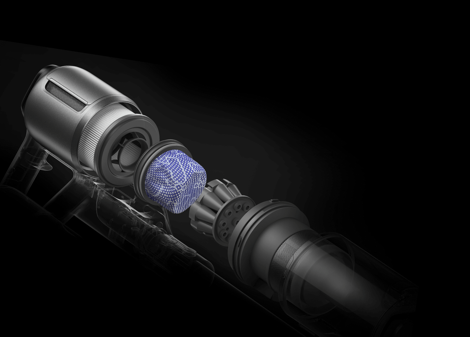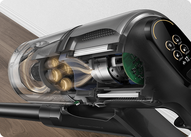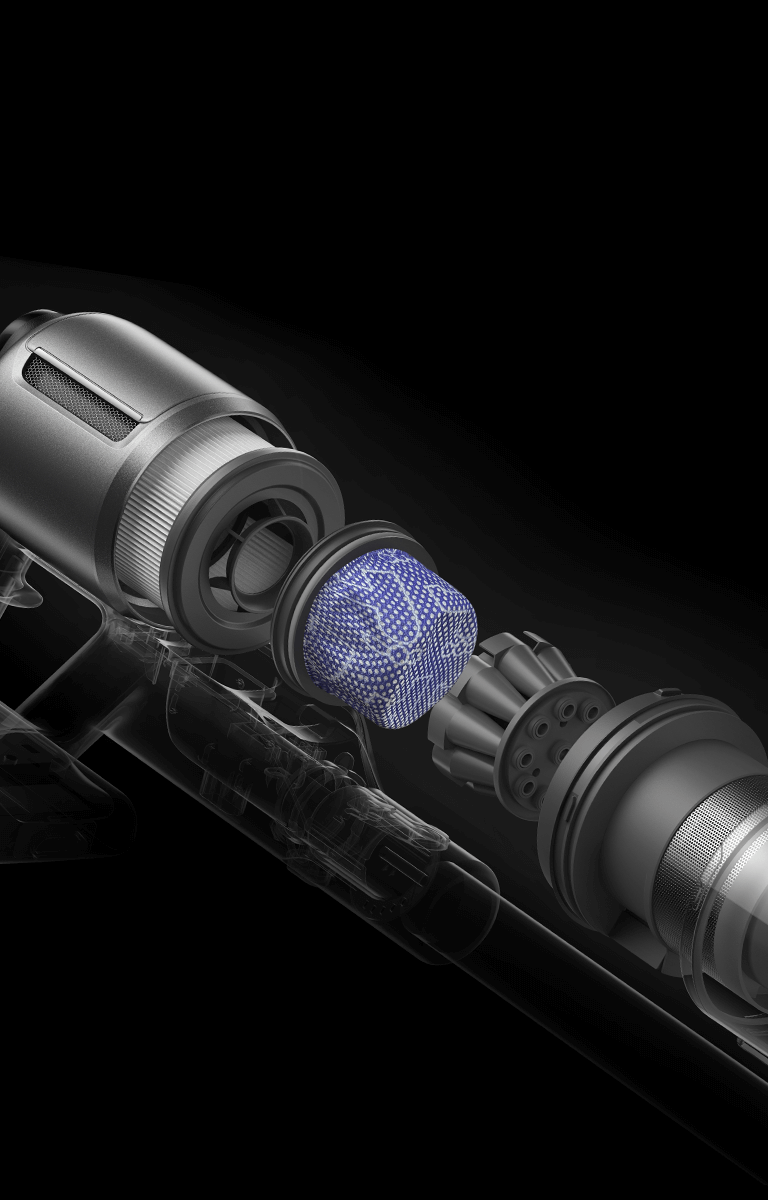 *310 AW, 150.000 o/min.: baseret på data fra vores interne laboratorium, den faktiske ydelse kan variere. Sugestyrken på 310 AW, som repræsenterer den højeste værdi inden for Dreames sortiment af ledningsfrie stangstøvsugere pr. maj 2024.